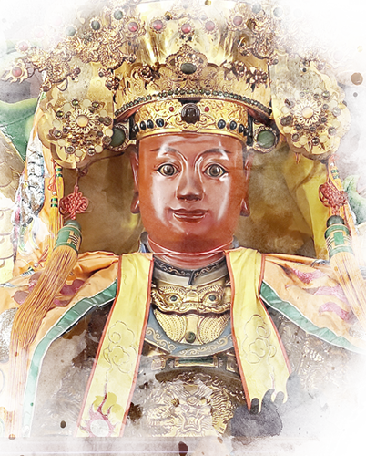 聖王「保安廣澤尊王」,姓郭,名忠福,原籍為中原汾陽縣邑人氏。其父為郭公亮,母為林氏素娘。唐末時,全家遷居至泉州,後又遷至南安縣安溪。尊王九歲時,嚴父郭公辭世,家境不幸,自此恪守天命,母子相依為命,生活困頓。